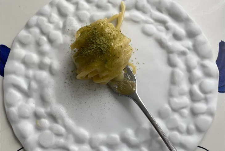 Nel frattempo, Di Liddo mette anima e corpo nel progetto Fugà, tra proposte super golose e una speciale attenzione ai dettagli, che siano i piatti – molto belli – o gli snack, deliziosi e mai banali. Una dedizione assai costosa in termini di benessere psico-fisico, se è vero che la bilancia ha da tempo lanciato l’allarme. Avendo messo in piedi una brigata sala-cucina giovane e compatta, con cui condivide gioie e dolori, i collaboratori hanno deciso di metterlo sotto tutela culinaria.