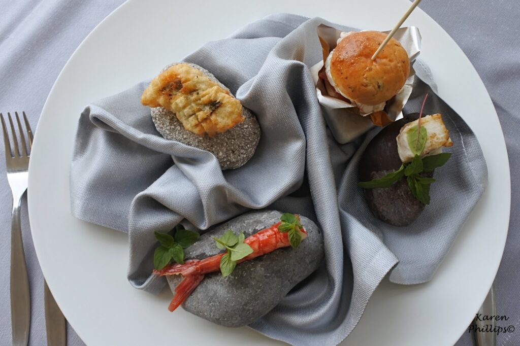 Next I was treated to the first of my appetizers. Four specialties on stones from Maronti Beach located about 30 minutes away on the other side of the island.