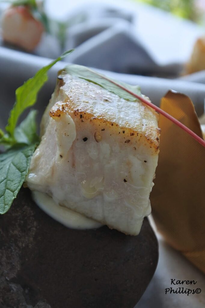 then seared amberjack with lemon oil.