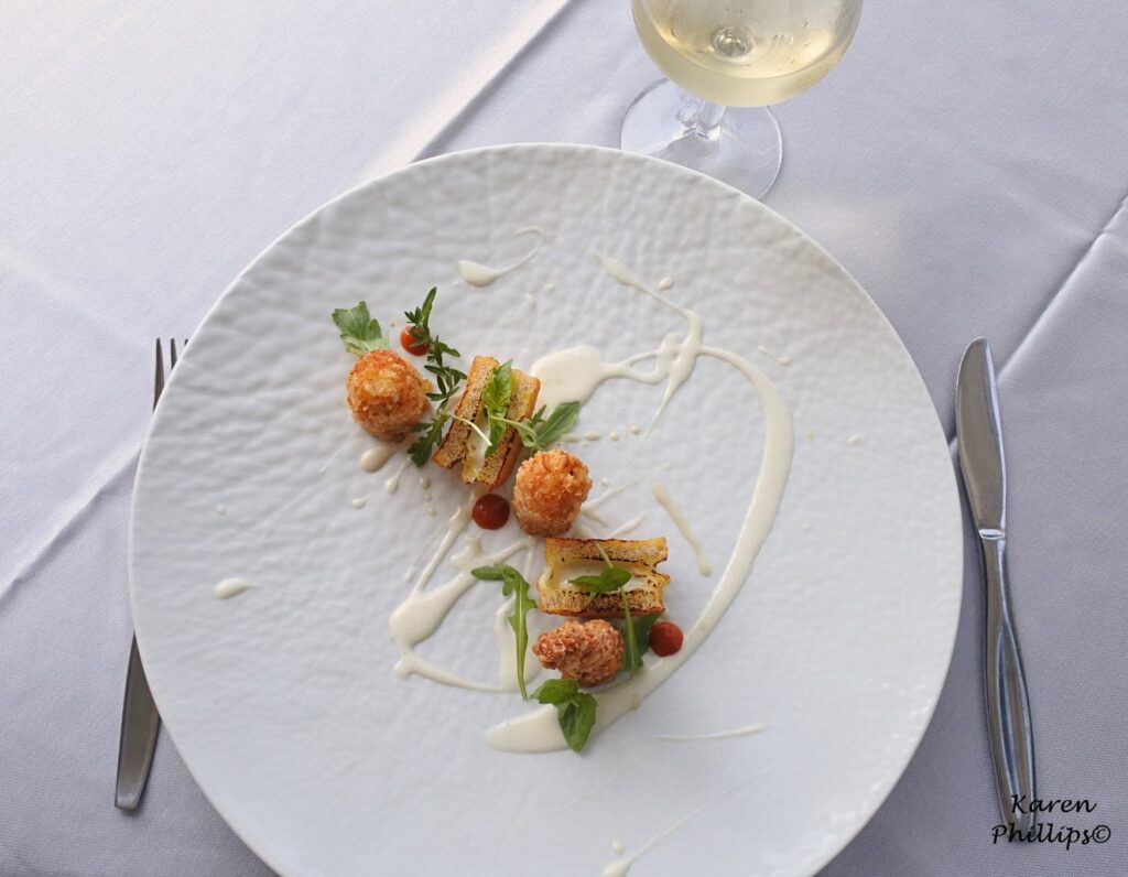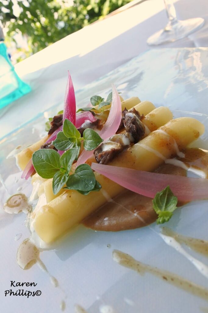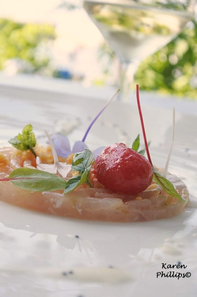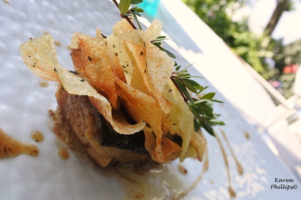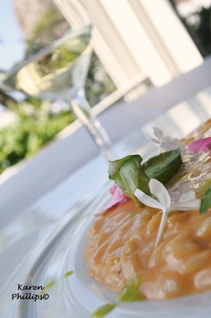 What can be more relaxing than a day at one of Ischia’s most popular thermal spas Negombo. I mean after a morning of thermal pool hopping (post soon). After a morning of laying out in the sun embracing a book of sodoku puzzles. After a morning of strolling through the gardens and people watching, I decided to have lunch at Al Fuga’. located right on the beach and headed by Executive Chef Emmanuel Di Liddo. It was about 2:30 p.m. and was led to my table overlooking the beach. The maitre arrived with a bottle of sparkling water and a bottle of Falanghina 2017 by Casa D’Ambra, one the islands leading wineries. A sip or two, then my journey began.