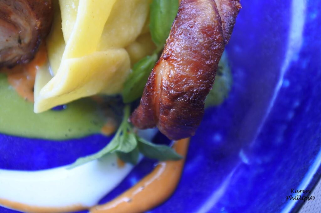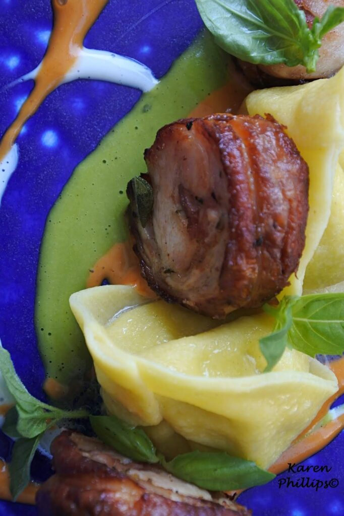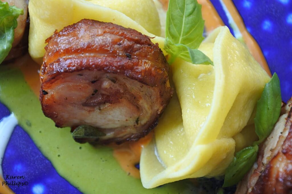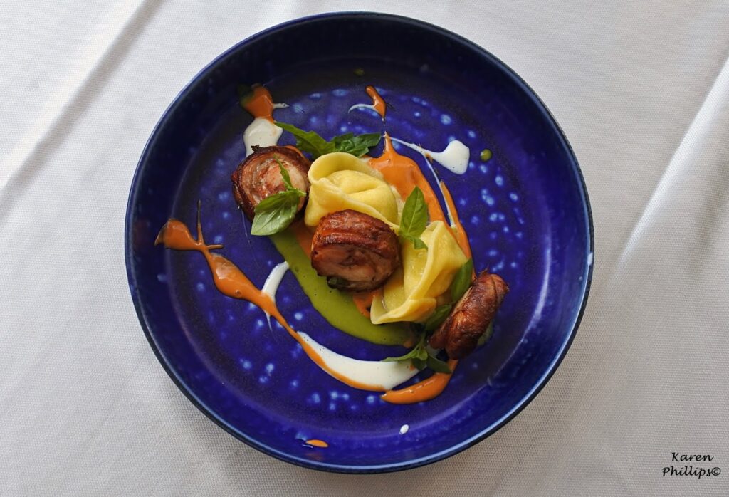 Then a dish that the chef calls an Ischian Sunday - fresh homemade tortello pasta stuffed with ricotta cheese and eggplant. Rabbit slow cooked in herbs, spices, and a flavorful hunter's sauce completed the dish.