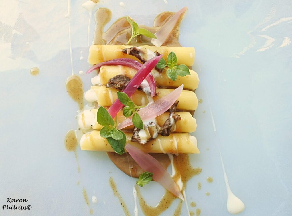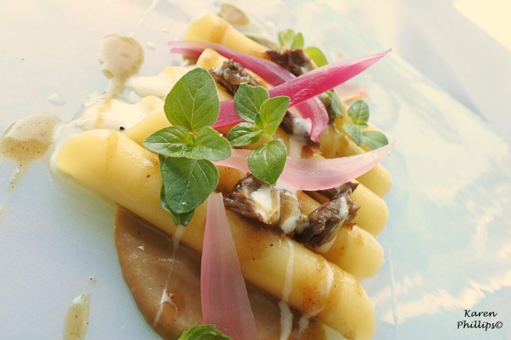 Did I have room for one more pasta dish? Sure. Di Liddo's version of the classic pasta al genovese. Candele pasta with butter, garlic and thyme, filled with parmigiano reggiano cream, and Tropea onions (cooked in stabilized water).
